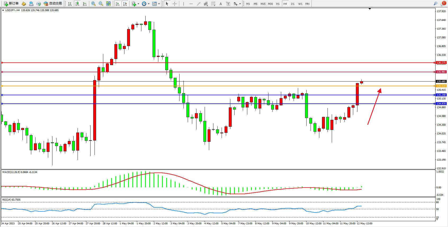 交易策略:135.534上方看涨,目标135.981  136.275