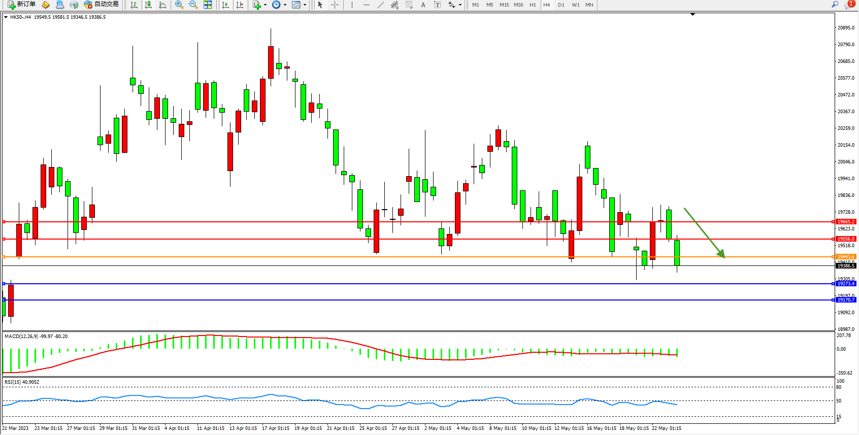 恒指HK50 4小时图