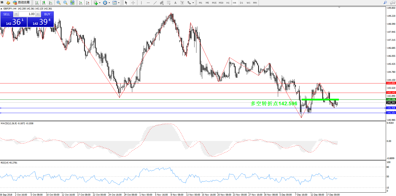 交易策略:142.596上方看涨,目标143.143、143.894