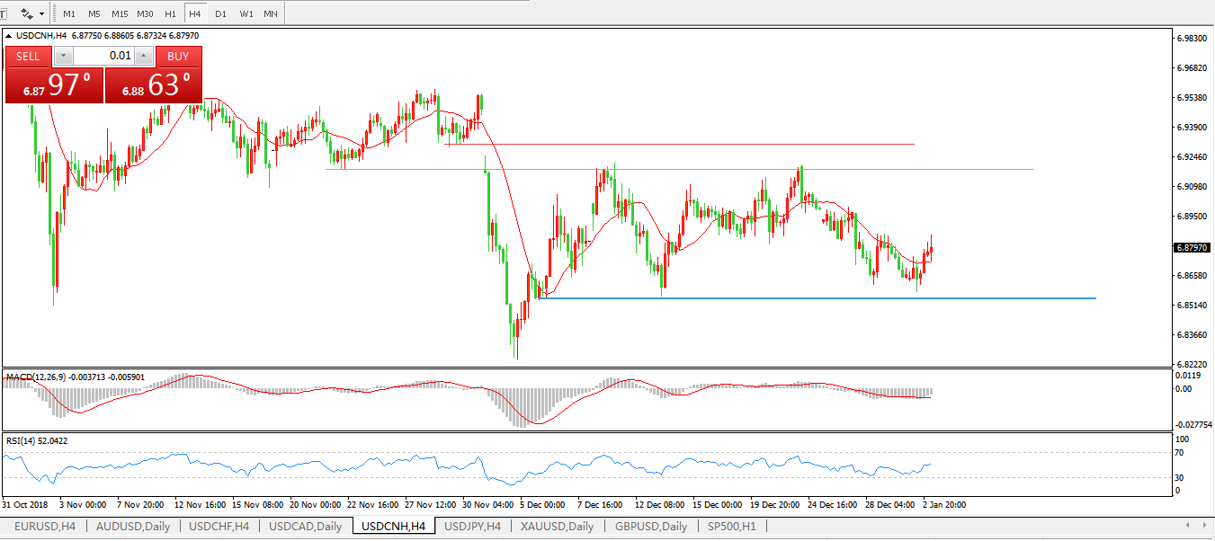 备选策略: 在6.9200之上,看涨,目标价位为6.9300,然后为6.9557。